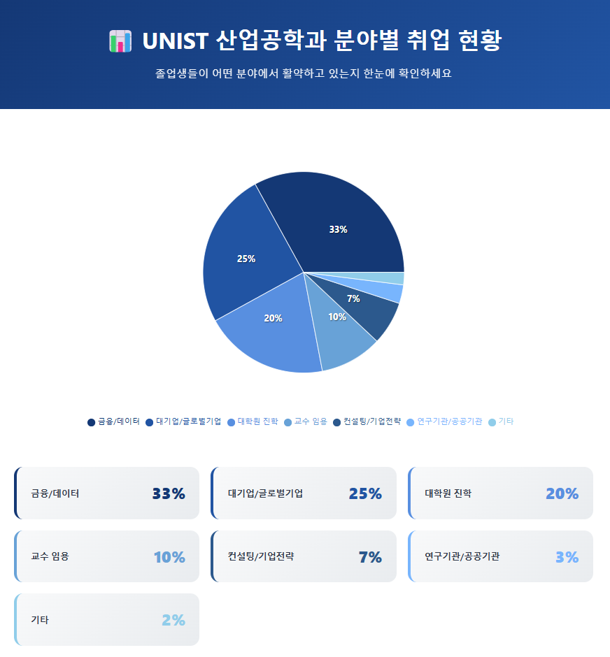 산업공학과 졸업생 취업현황(2025년 9월 기준) 2025.09.29 “산업공학과 졸업생들은 컨설팅, 데이터 사이언스, 제조, 금융, 연구기관, 대학원 등 다양한 분야에서 활약하고 있습니다.” “국내외 유수 기업 및 대학에 진출하며, 4차 산업혁명 시대의 핵심 인재로 성장하고 있습니다.”